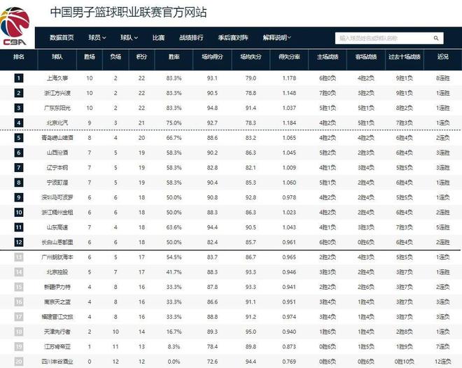 CBA积分榜最新排名出炉!广厦逆袭广东重返第2:辽宁第7四川垫底