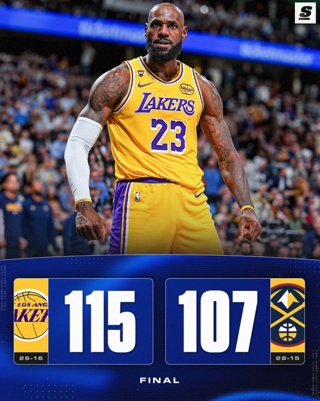 湖人115-107逆转掘金 东契奇38+13+10詹姆斯准三双