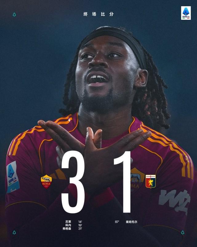 意甲-苏莱破门科内建功 罗马3-1热那亚升至第四