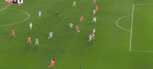 比赛尾声阶段,孔德头球击中横梁,索莱尔飞铲佩德里,VAR介入,裁判直接将索莱尔罚下。