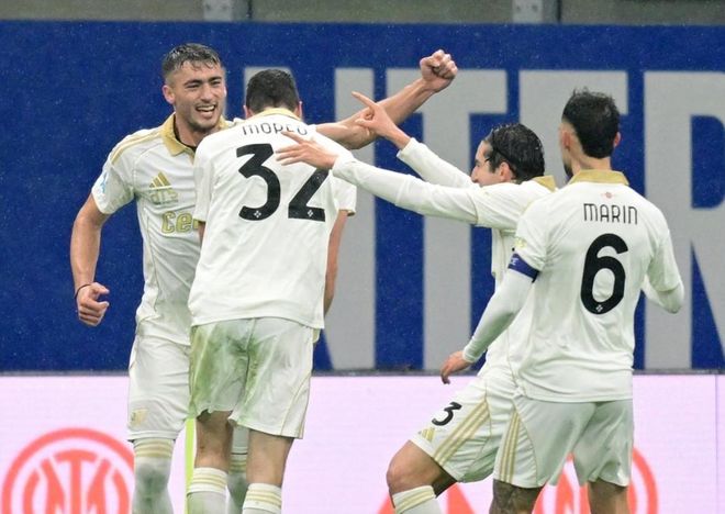 比赛刚开始不久,国际米兰就创造出机会。皮奥-埃斯波西托在禁区内转身低射,打远角,结果踢偏了。第11分钟,国际米兰丢球了。索默出现致命失误,他在禁区外把球传给莫雷奥。莫雷奥直接超远距离吊射空门,皮球划出一道漂亮的弧线钻入球门!8分钟后,比塞克突入禁区,起脚射门,皮球稍稍偏出右侧立柱。