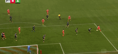 大比分领先的拜仁,依旧没有停下进球的脚步,第76分钟迪亚斯投桃报李,大禁区前沿送出手术刀直塞,奥利塞单刀破门,上演梅开二度把比分改写为了7-1,比赛最后时刻,若纳坦塔的直塞,给了格雷茨卡铲射的机会,皮球越过出击的门将滚入球门,将全场的比分定格为了8-1。